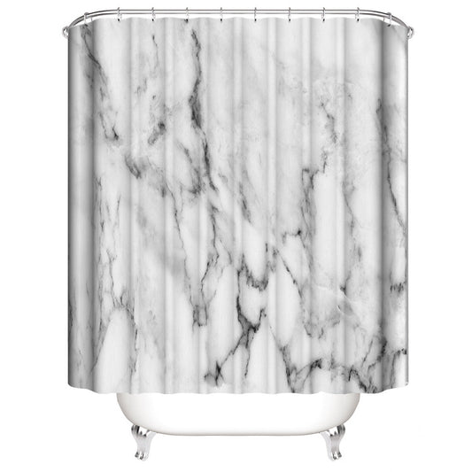Marble White Shower Curtain Set With Non Slip Rug Bath Mat Carpet Modern Bathroom