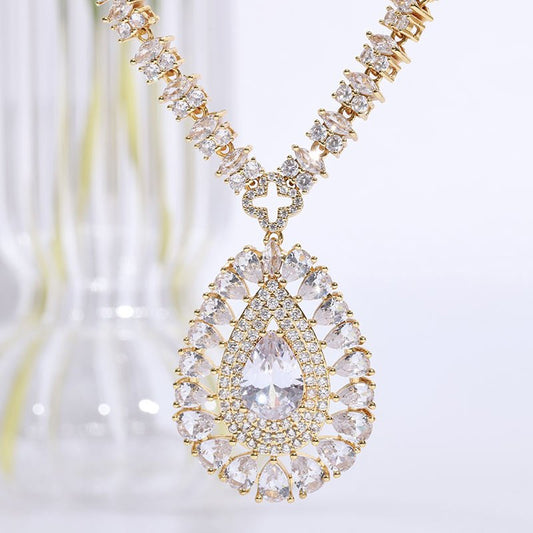 Fashion Bridal Jewelry Set Women Luxury Gold Plated Cubic Zirconia Jewelry Set