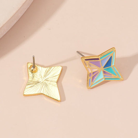 Genshin Impact Primogem Earrings Jewelry Enamel Colorful Geometric Star Stud Earrings For Women Men